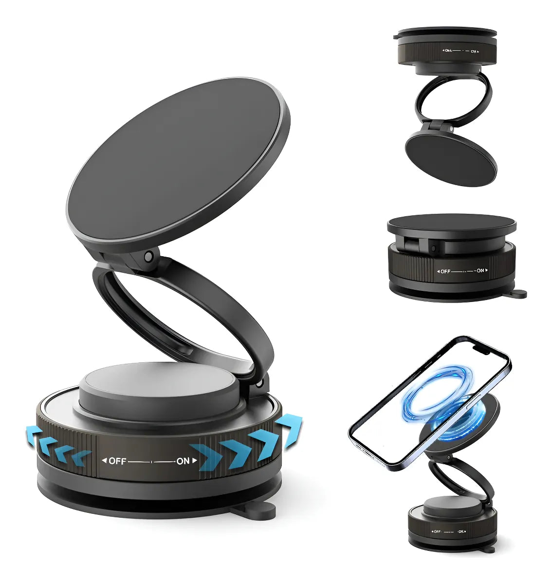 Con una succión por vacío mejorada y un mecanismo de bloqueo giratorio, este soporte magnético plegable para coche ofrece la máxima potencia de succión física.