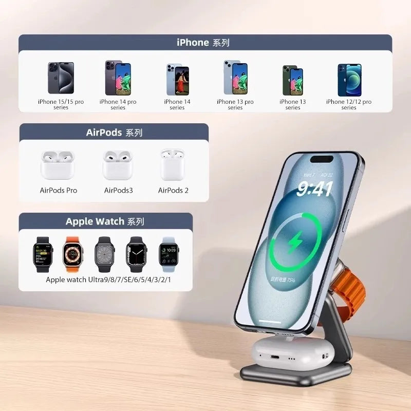 Cargador 3 EN 1 inalámbrico MagSafe para Apple