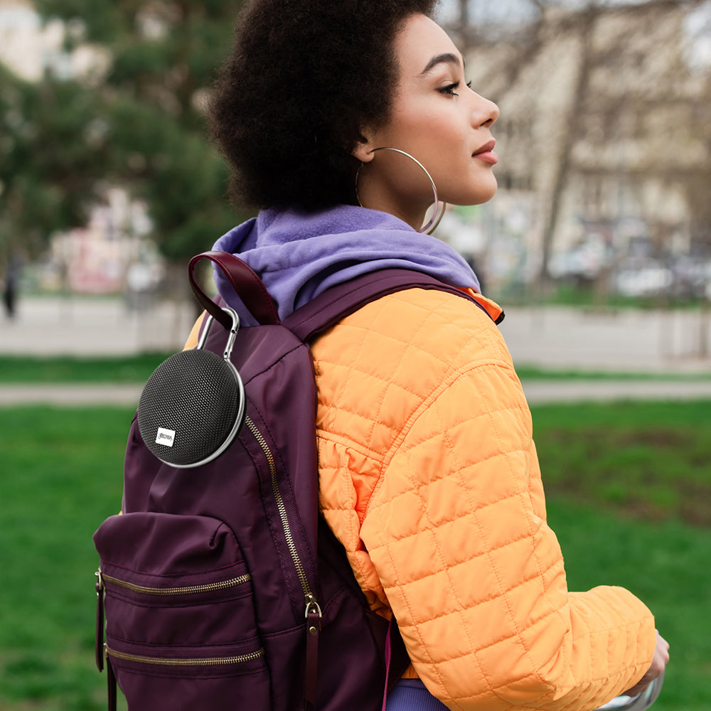 Diseñado para uso en exteriores, nuestro altavoz Bluetooth Vision cuenta con una calificación de impermeabilidad IPX5 y una construcción duradera, lo que lo hace adecuado para viajes de campamento, fiestas en la playa y más.