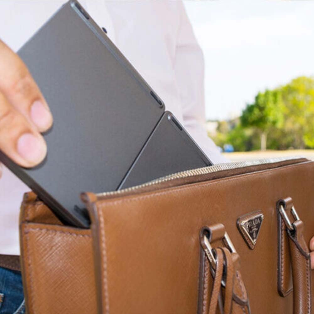 Con un diseño compacto que cabe en el bolsillo de tu chaqueta o bolso, podrás llevarlo a reuniones, viajes, conferencias o trabajar en cualquier cafetería. Se pliega en segundos y se guarda en su estuche rígido, protegiéndolo mientras te acompaña a todas partes