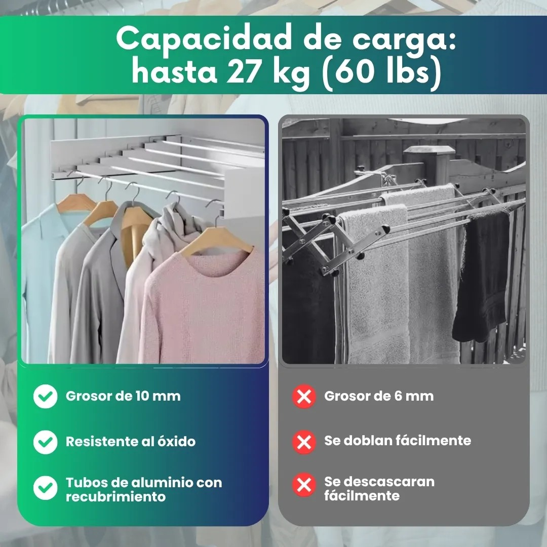 - Construcción Duradera: Fabricado con acero resistente, este tendedero garantiza una sólida estructura que soporta el peso de tu ropa sin problemas, asegurando una larga vida útil.